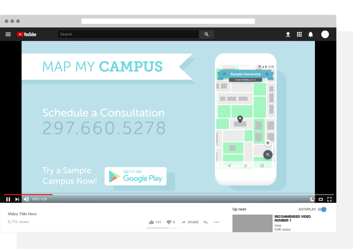 With recent developments in indoor positioning technology, there are multiple viable techniques for accurate positioning with a smartphone. Map My Campus leverages this technology along with data gathered on campus to offer a feature-rich mobile app. Students can map a path to class with step by step directions, find an appropriate parking lot, see upcoming on-campus events, locate resources, share their location, find dining hours, and much more.