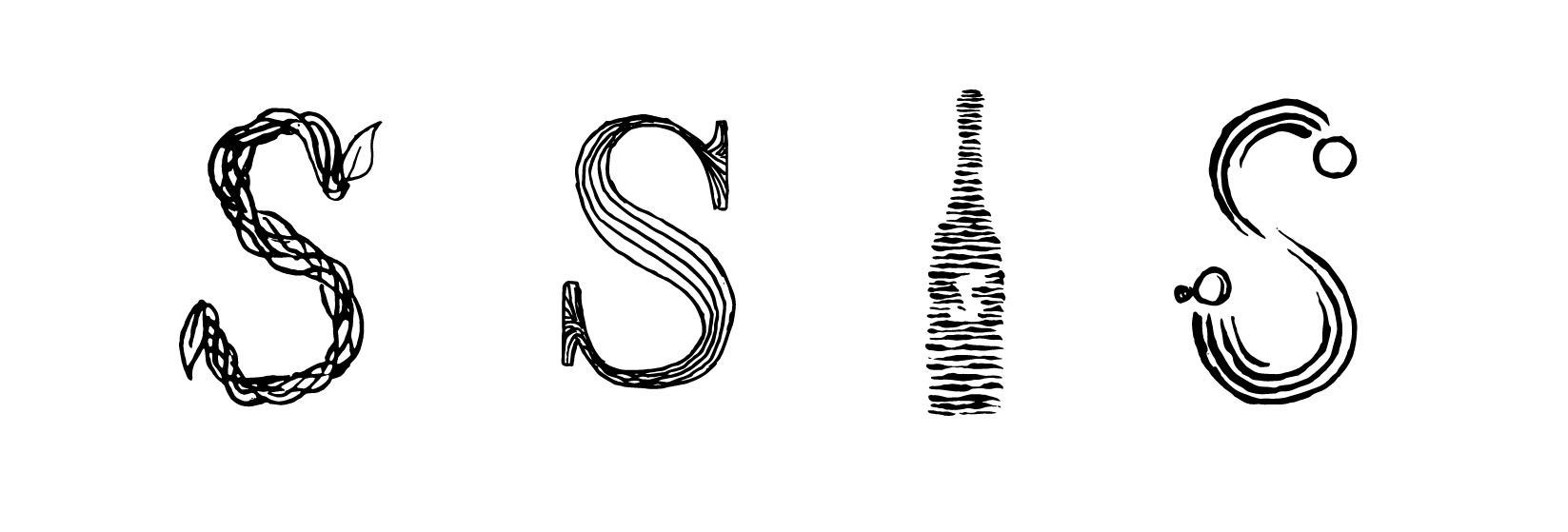 I started with free word association and after going through my list I combined related words to make around 20 different sketches. Based on critiques and my own judgement I narrowed it down to four ideas. Most of my ideas involved lines or waves of some sort, depicting vines, rays of light, ripples of wine, or the path of the moon and sun. The second sketch above is the one I moved forward with, however I still felt it was too traditional looking for my target market. I wanted to shoot for something a bit cleaner and eye catching